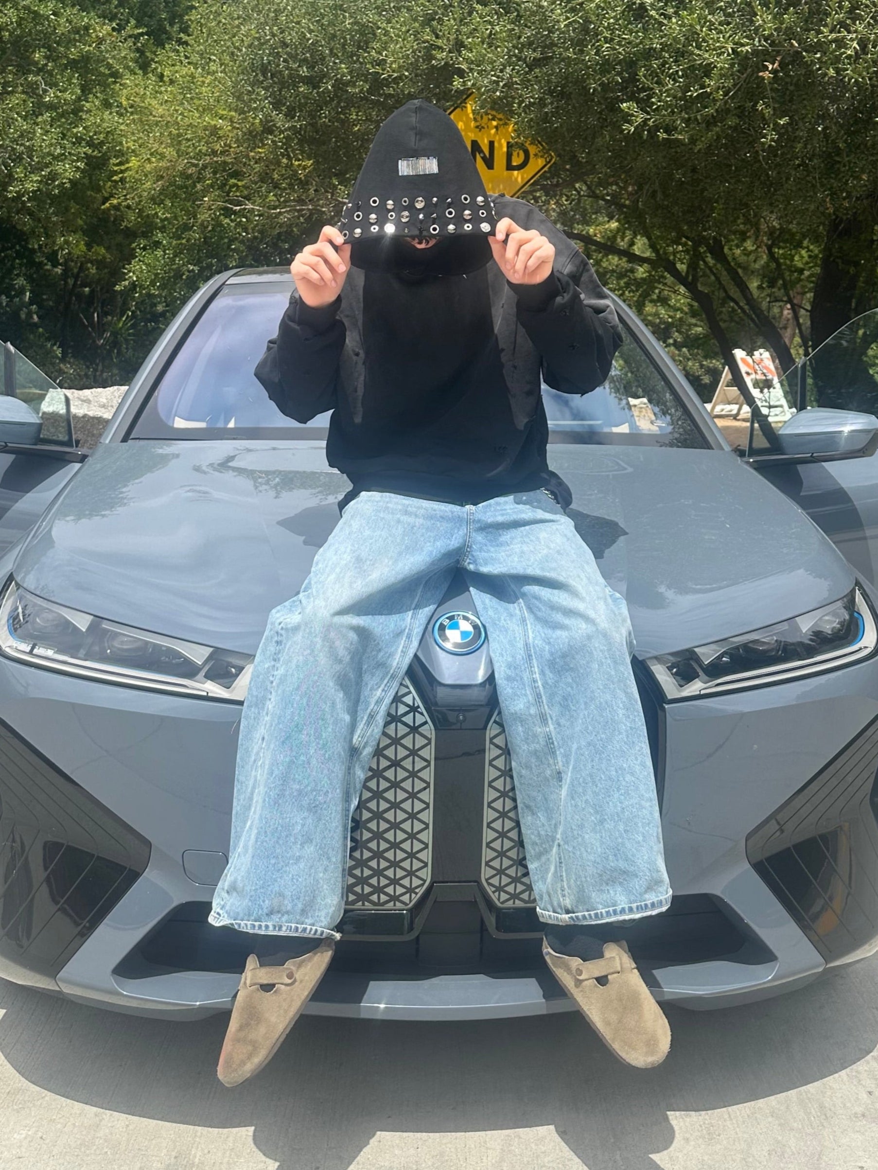 The hood is meticulously finished with custom metal spikes and grommets, creating a statement look that balances edge with sophistication. Hand-distressed detailing across the body and sleeves ensures every piece is unique, with natural wear patterns that develop character over time.